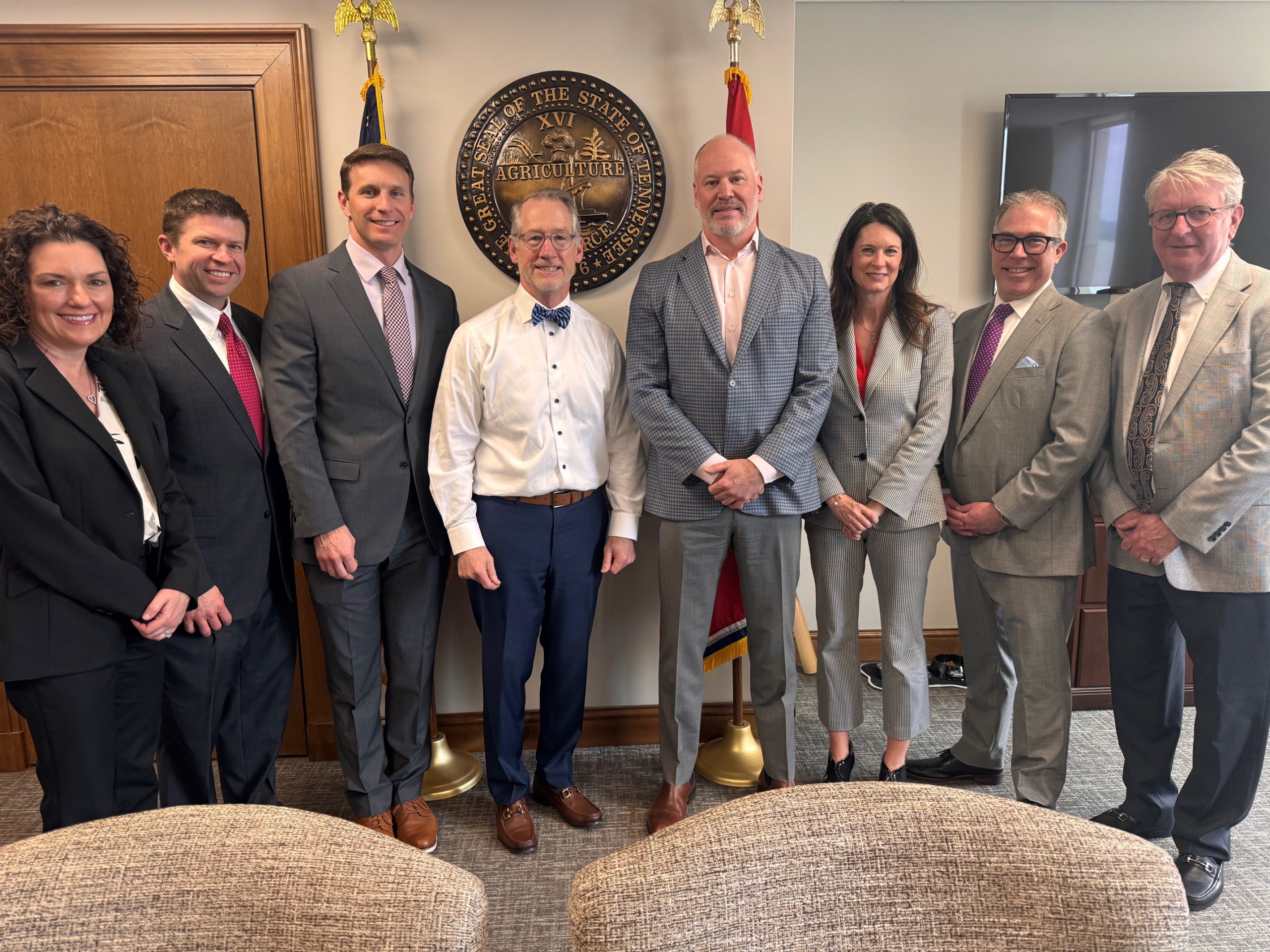 Among those representing TOS during the visit were physicians and healthcare leaders from across the state, including Dr. Eric Bowman, President of TOS and a physician with Vanderbilt Orthopaedics, and Dr. Chris Carver, TOS Vice President from Watauga Orthopaedics. They were joined by industry and practice leaders such as Rob Simmons, CEO of Tennessee Orthopaedic Alliance; Earl Anderson, Executive Director of TOS; Jeff McPherson, Market President of TOA East Tennessee; Becky Farmer, CEO of Center for Sports Medicine and Orthopaedics; and Kim Marden, CEO of Watauga Orthopaedics.